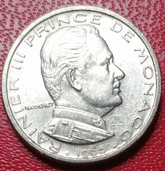 Pièce de 1/2 franc Monaco de 1965. Etat : SUP. Frappée à 375,000 exemplaires seulement.