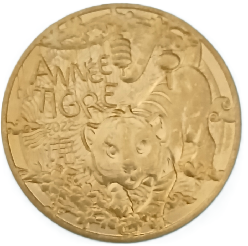 1/4 d’euro française 2022 année du Tigre. Frappée à 500.000 exemplaires seulement. Etat : SUP+.