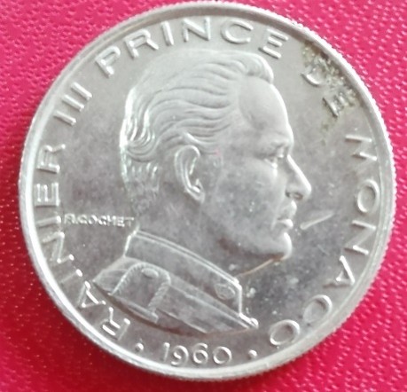 Pièce de 1 franc Monaco de 1960. Etat : TTB+. Frappée à 500,000 exemplaires seulement.