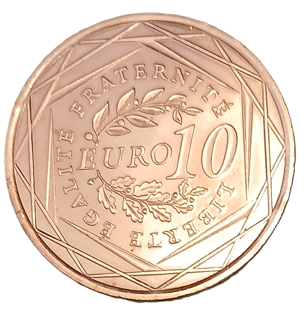 Pièce de 10 euros en argent (12g, 90%) française de 2009 type Semeuse. Frappée à 2.000.000 d’exemplaires. Etat : FDC.