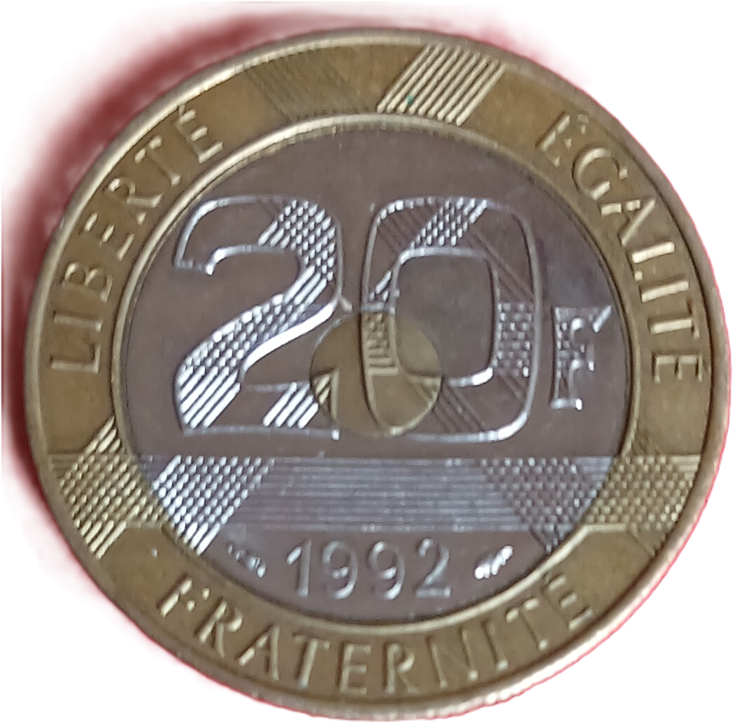 Pièce de 20 francs type Mont Saint Michel V fermé de 1992. Frappée à 59.966.063 exemplaires. G. 871. Etat : SUP.