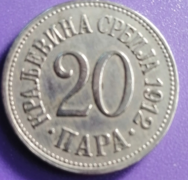 Pièce de 20 para serbe de 1912. Etat : TTB.