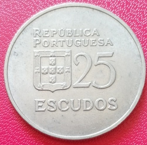 Pièce de 25 escudos portugaise de 1980. Etat : TTB. Frappée à 750,000 exemplaires seulement.