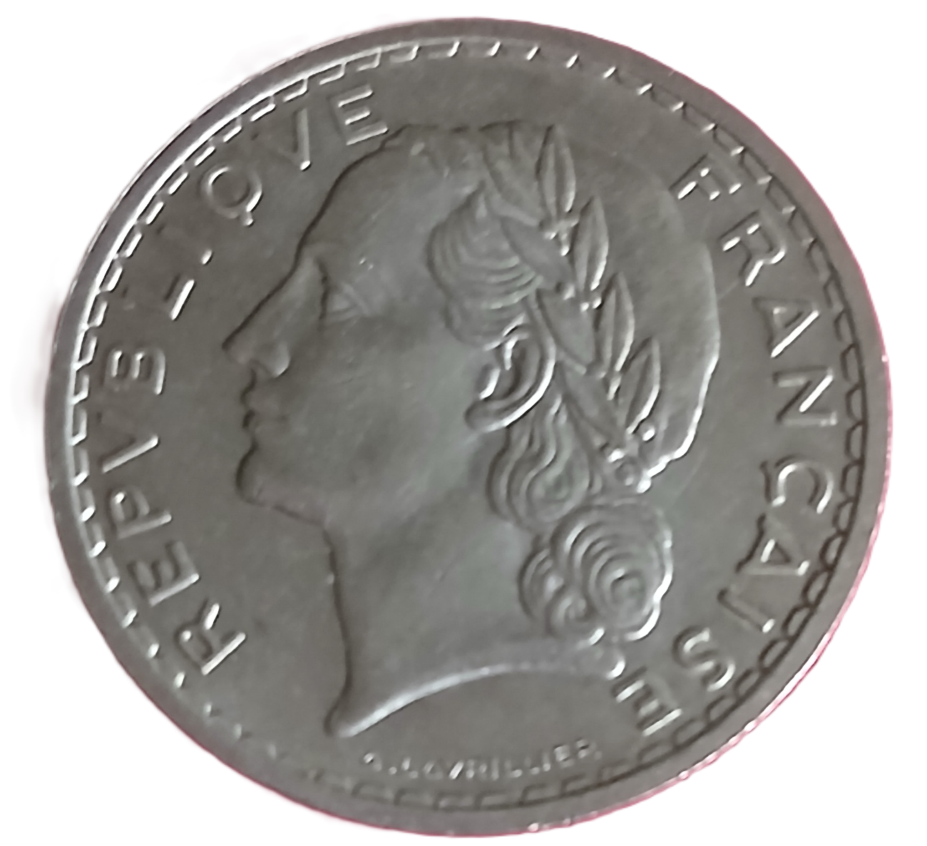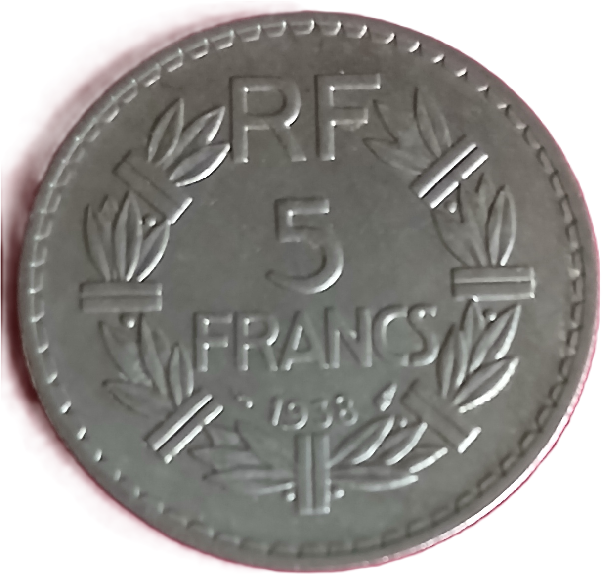 5 francs type Lavrillier en nickel de 1938. Frappée à 4.976.751 exemplaires. G. : 760. Etat : TTB+.