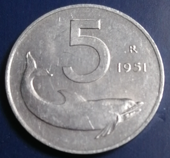 Pièce de 5 lires italienne de 1951. Etat : SUP. Frappée à 96,600,000 exemplaires.