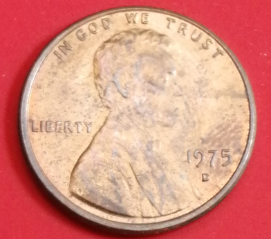 Pièce de 1 cent américaine de 1975 D (atelier de Denver). Etat : SUP. Frappée à 4.505.245.300 exemplaires.