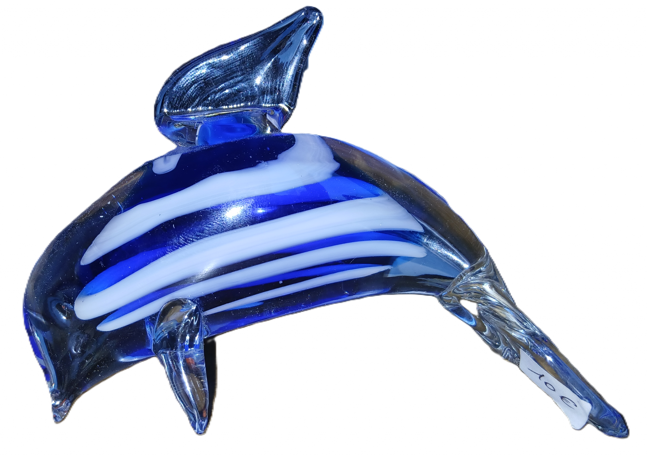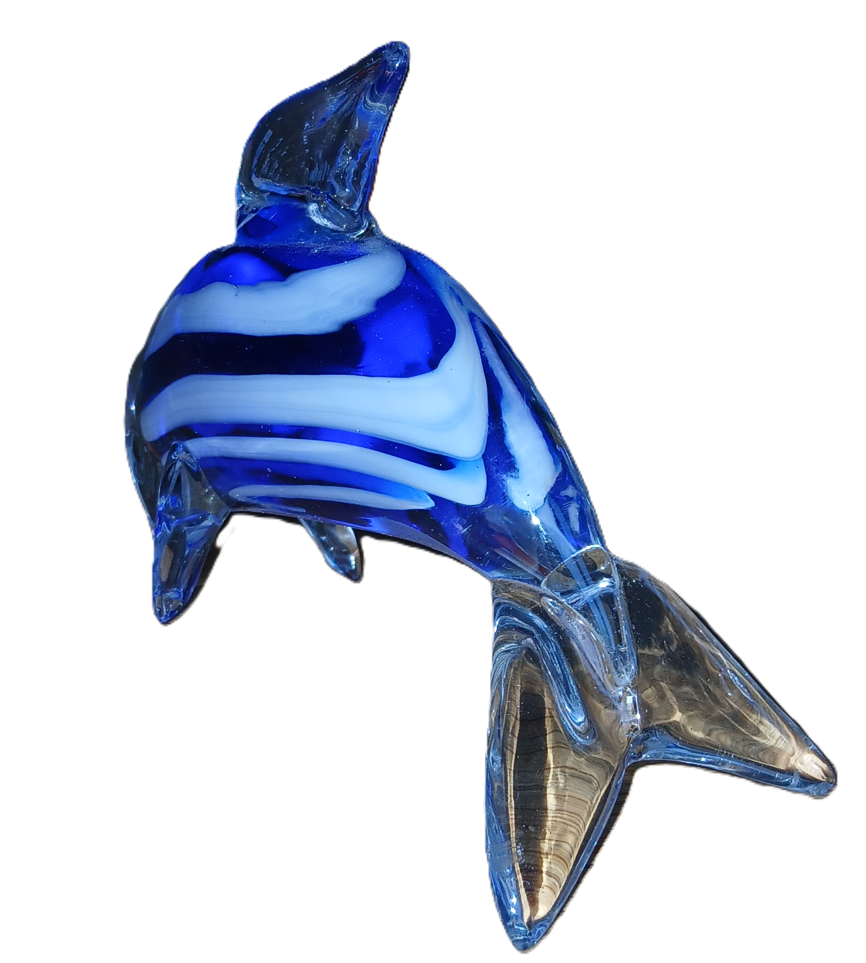Bel objet artisanal en verre fait à la main représentant un dauphin.