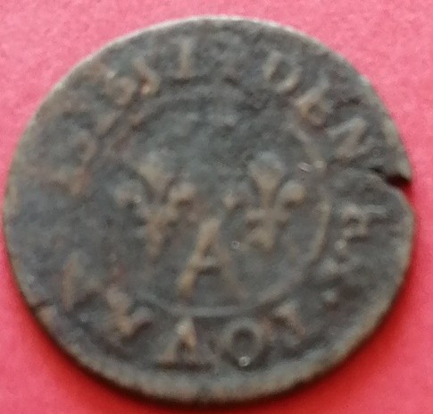 Pièce de monnaie française denier tournois Gaston d’Orléans 1652 A. Etat : B-.