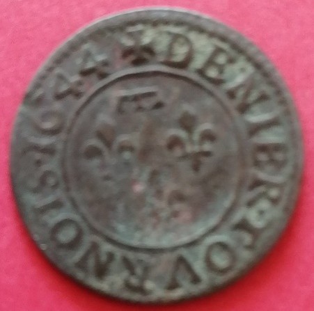 Pièce de monnaie Double tournois Gaston D’Orléans, Principauté de Dombes 1644 Trévoux