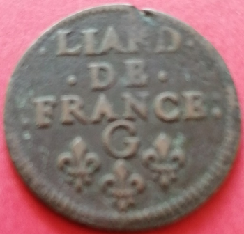Liard de France Louis XIV au buste juvénile G (Châtellerault) 1657