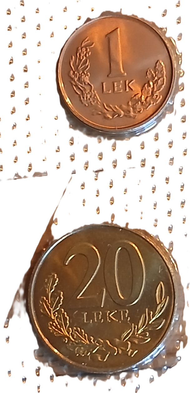 Lot de pièces de monnaie Albanie composé des pièces suivantes : 1 Lek 1996 (FDC), 20 Leke 2000 (FDC).
