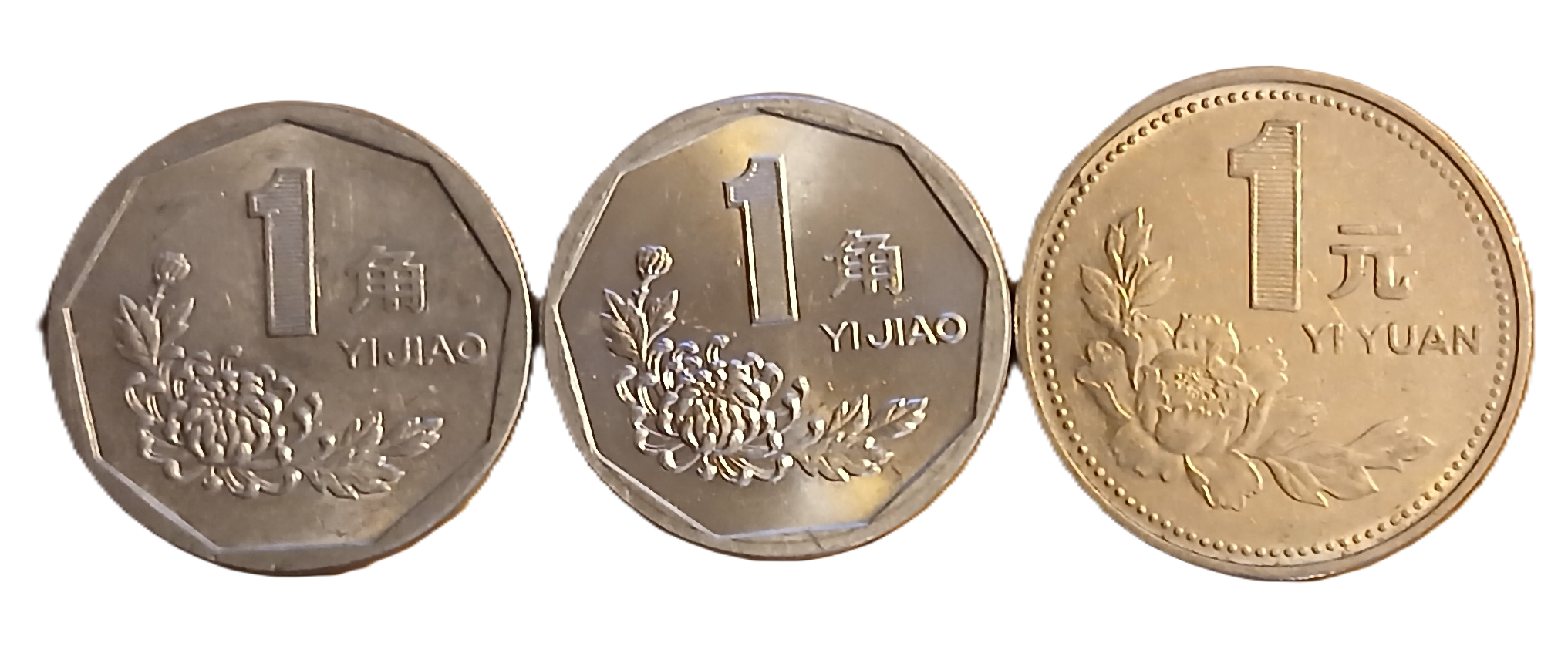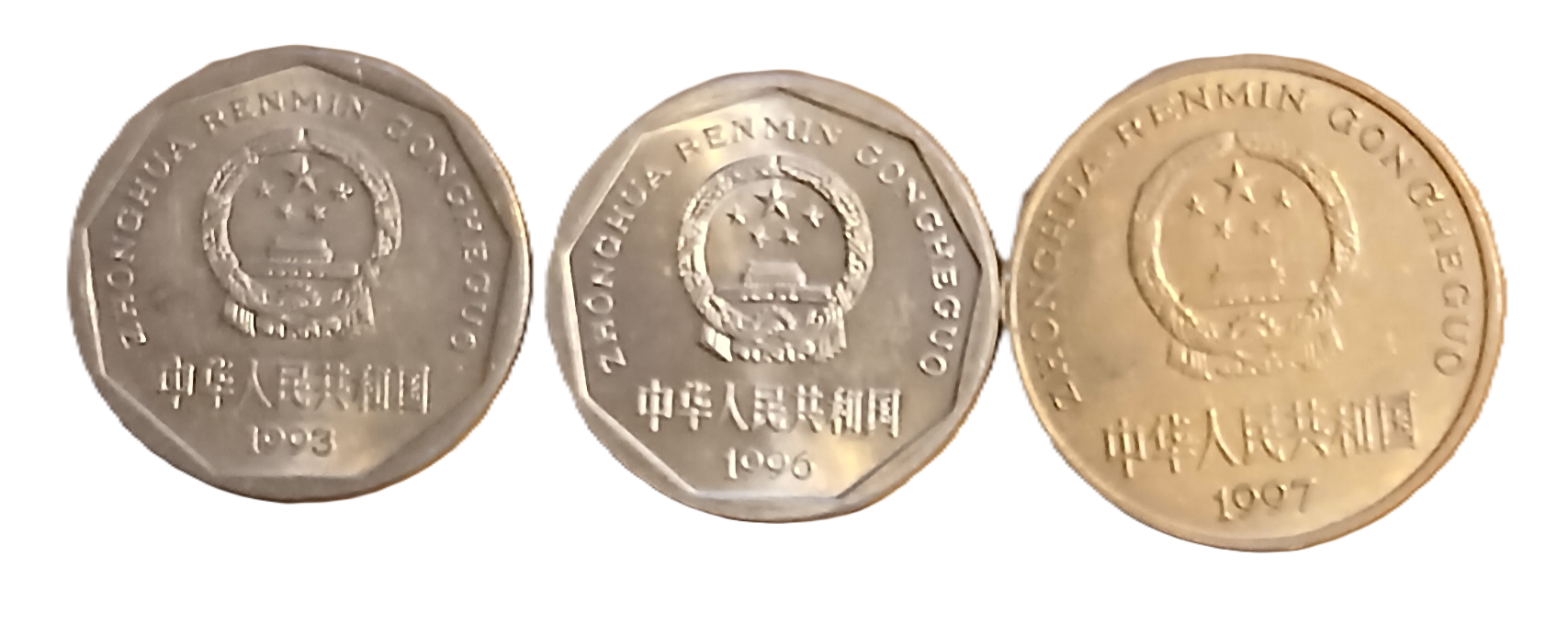 Lot de pièces de monnaie chinoises composé de : 1 Jiao 1993 et 1 Jiao 1996 FDC, 1 Yuan 1997.