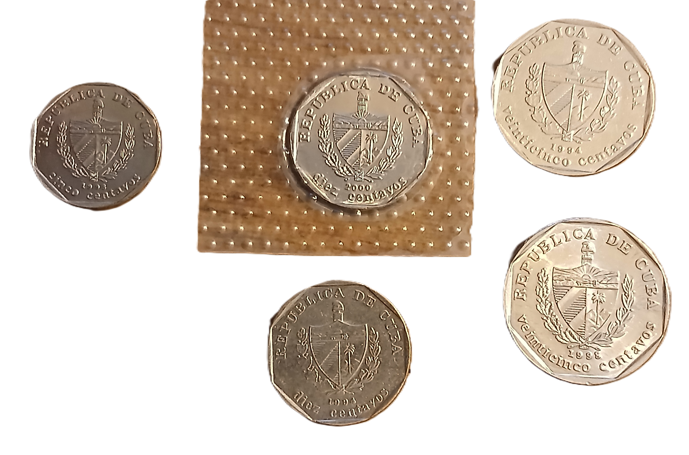 Lot de pièces de monnaie cubaine composé de : 5c 1998, 10c 2000 FDC, 10c 1994, 25c 1994, 25c 1998 FDC.