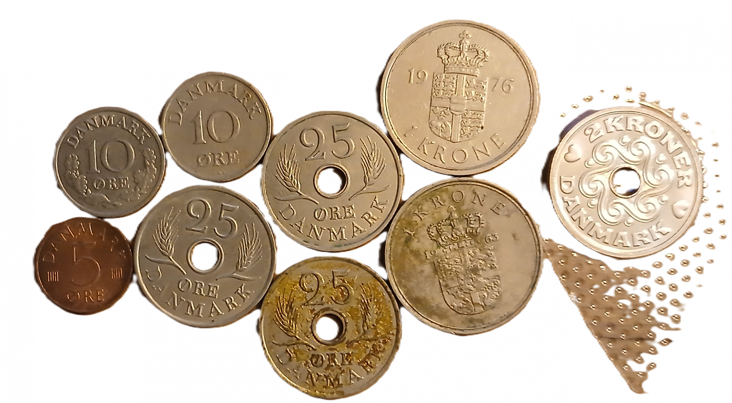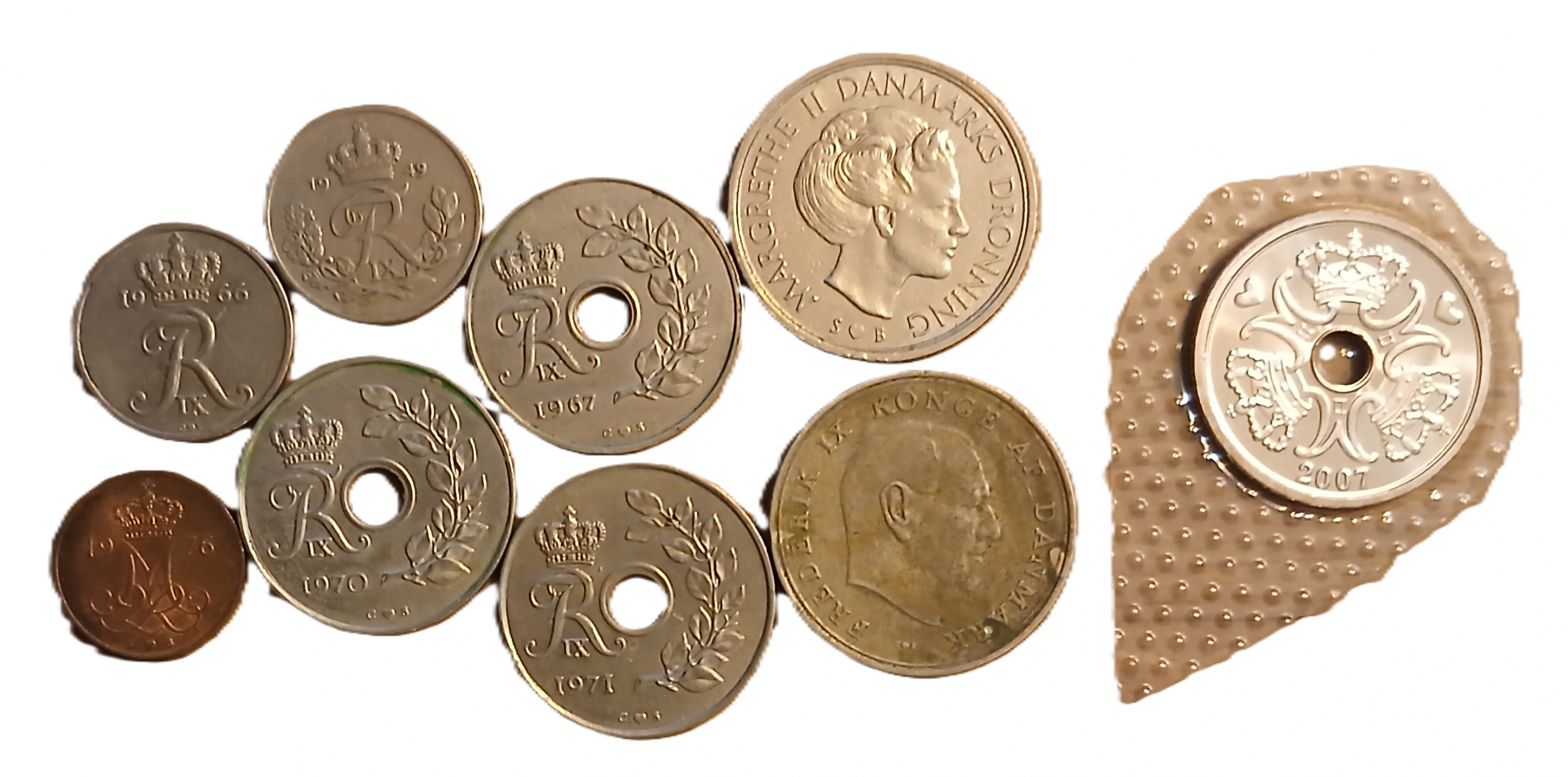 Lot de pièces de monnaie danoises composé de : 5 ore 1976, 10 ore 1949 et 1966, 25 ore 1967, 1970, 1971, 1 Couronne 1963 et 1976, 2 Couronnes 2007 FDC.