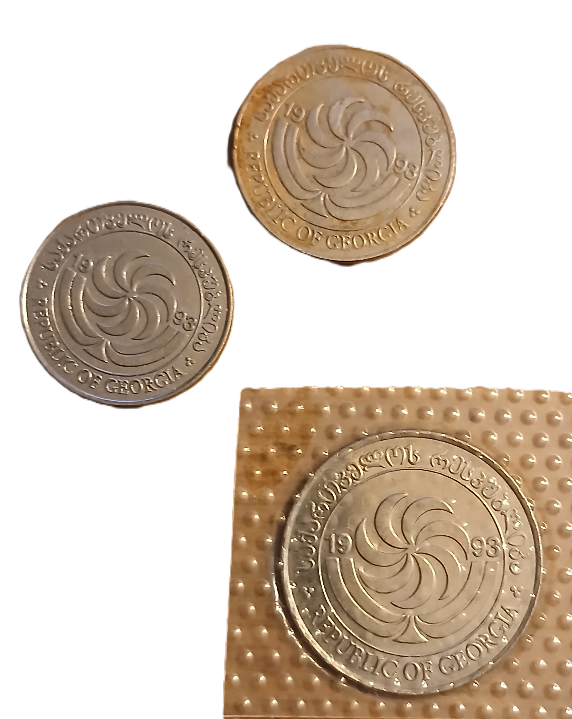 Lot de pièces de monnaie géorgiennes composé de : 5, 10 et 20 thetri de 1993 dont une FDC.