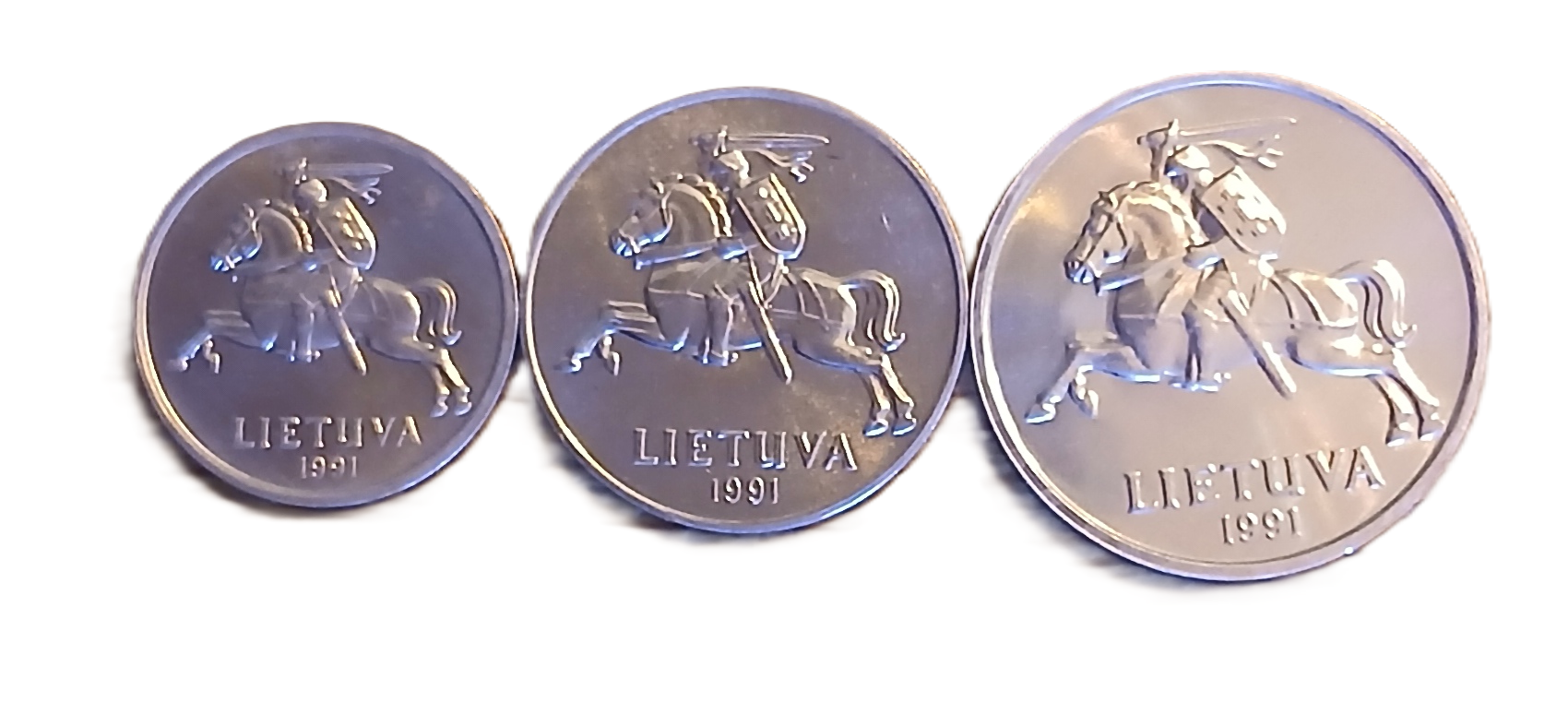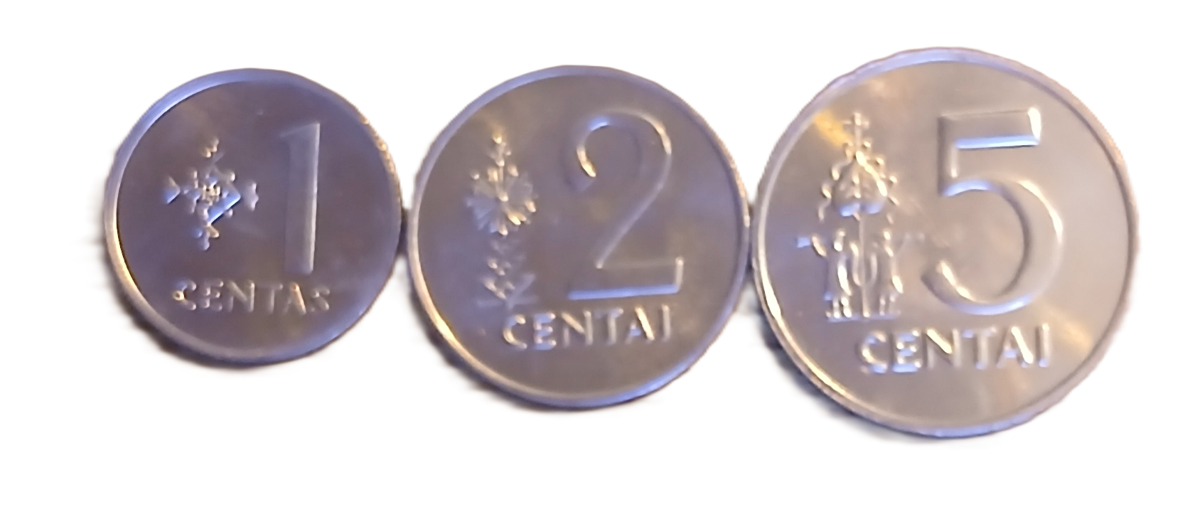 Lot de pièces de monnaie lituaniennes composé de : 1, 2 et 5 c de 1991 toutes FDC.