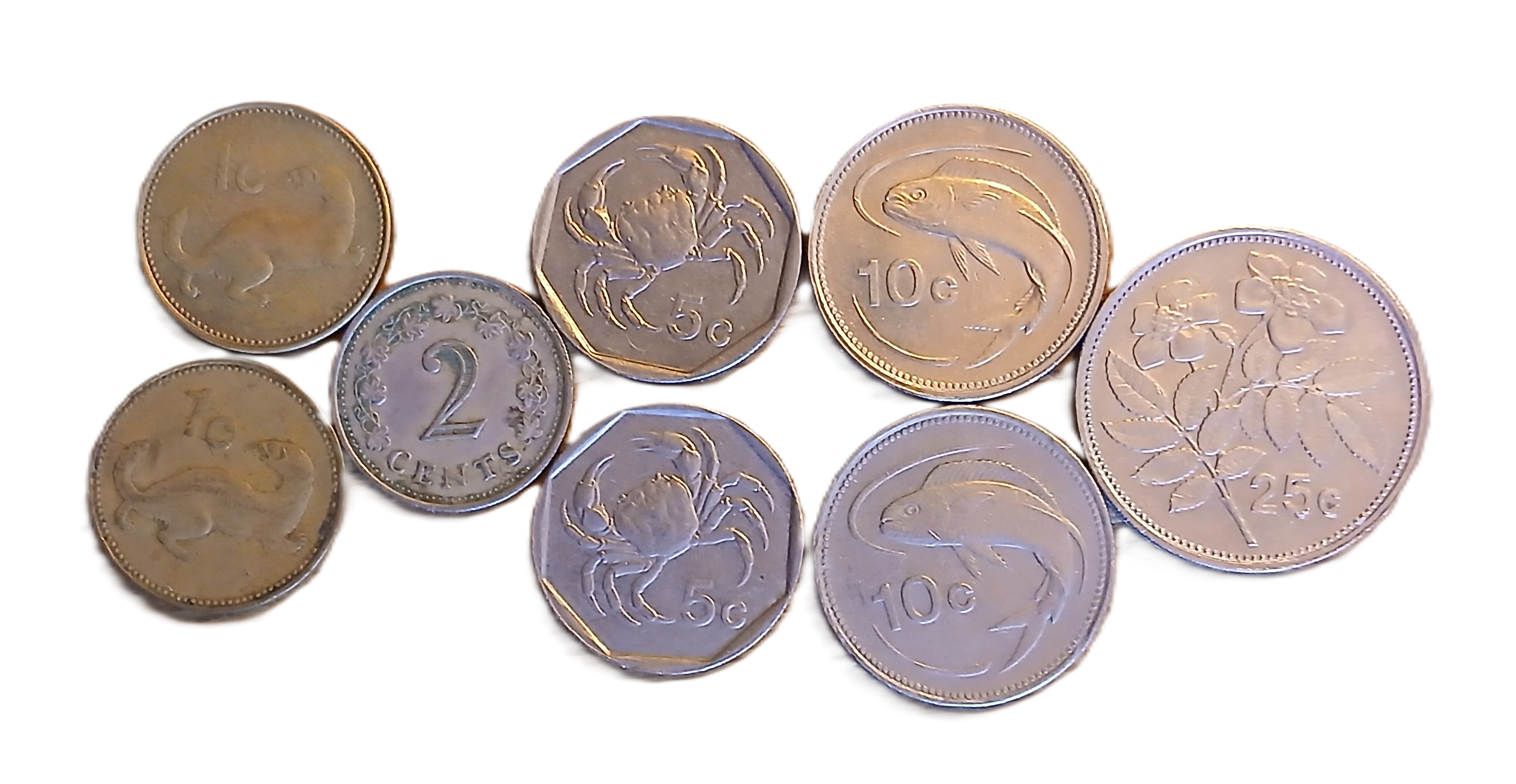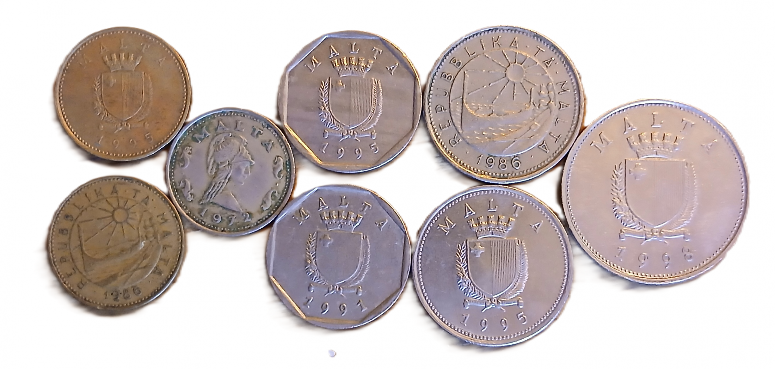 Lot de pièces de monnaie maltaises composé de : 1c 1986, 1c 1995, 2c 1972, 5c 1991 et 1995, 10c 1986, 10c 1995, 25c 1995.