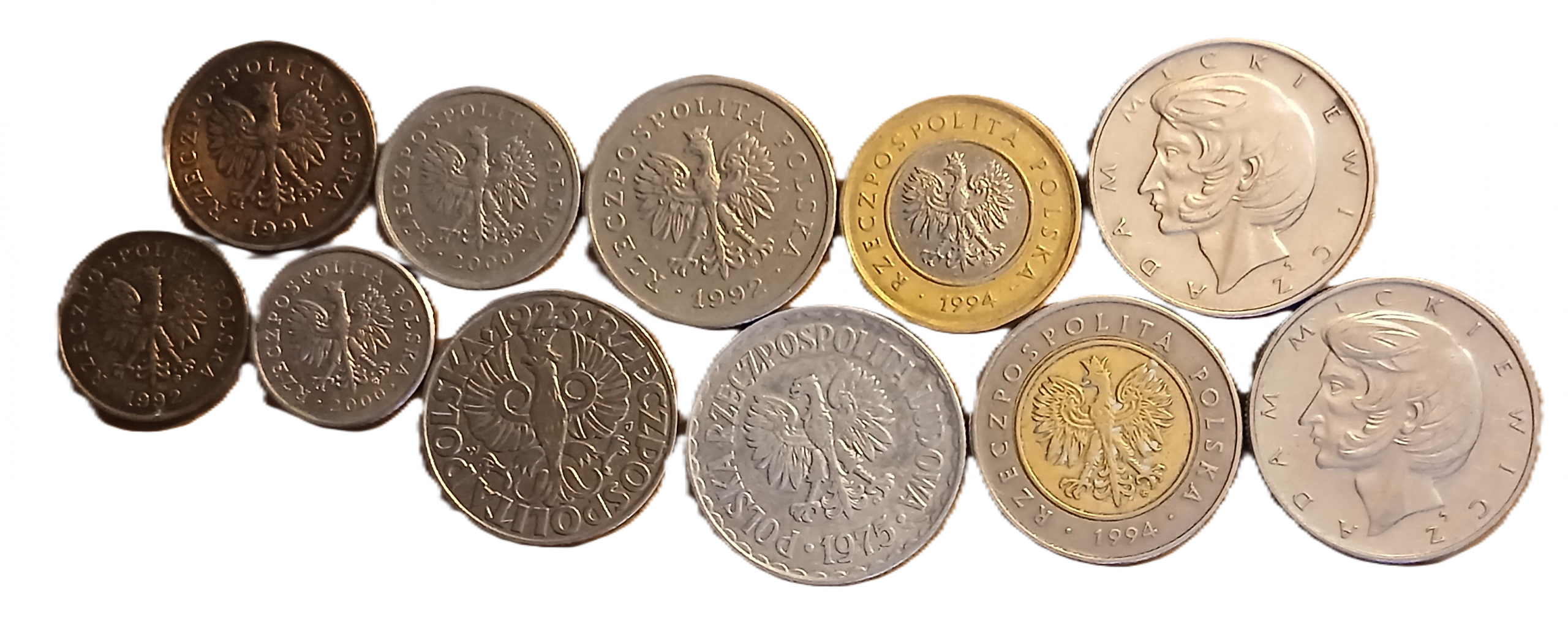Lot de pièces de monnaie polonaise composé de : 2G 1992, 5G 1991, 10G 2000, 20G 2000, 50G 1923, 1Z 1975, 1Z 1992, 2Z 1994, 5Z 1995, 10Z 1975 et 1976.