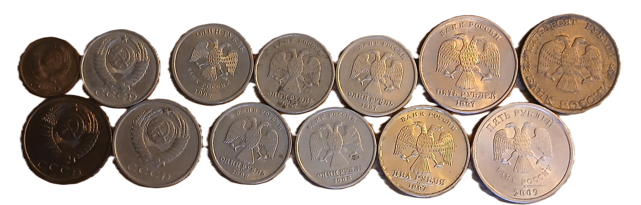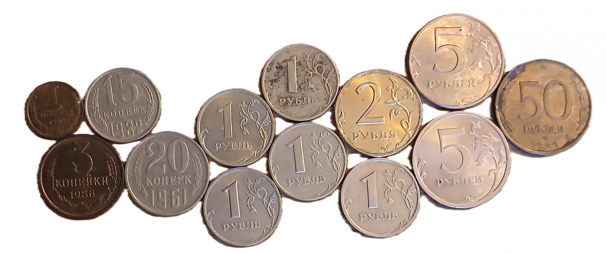 Lot de pièces de monnaie russe composé de : 1k 1990, 3k 1986, 15k 1982, 20k 1961, 1R 1997 M et SP, 1998 M et SP, 2008, 2R 1997, 5R 1997 et 2009, 50R 1993.