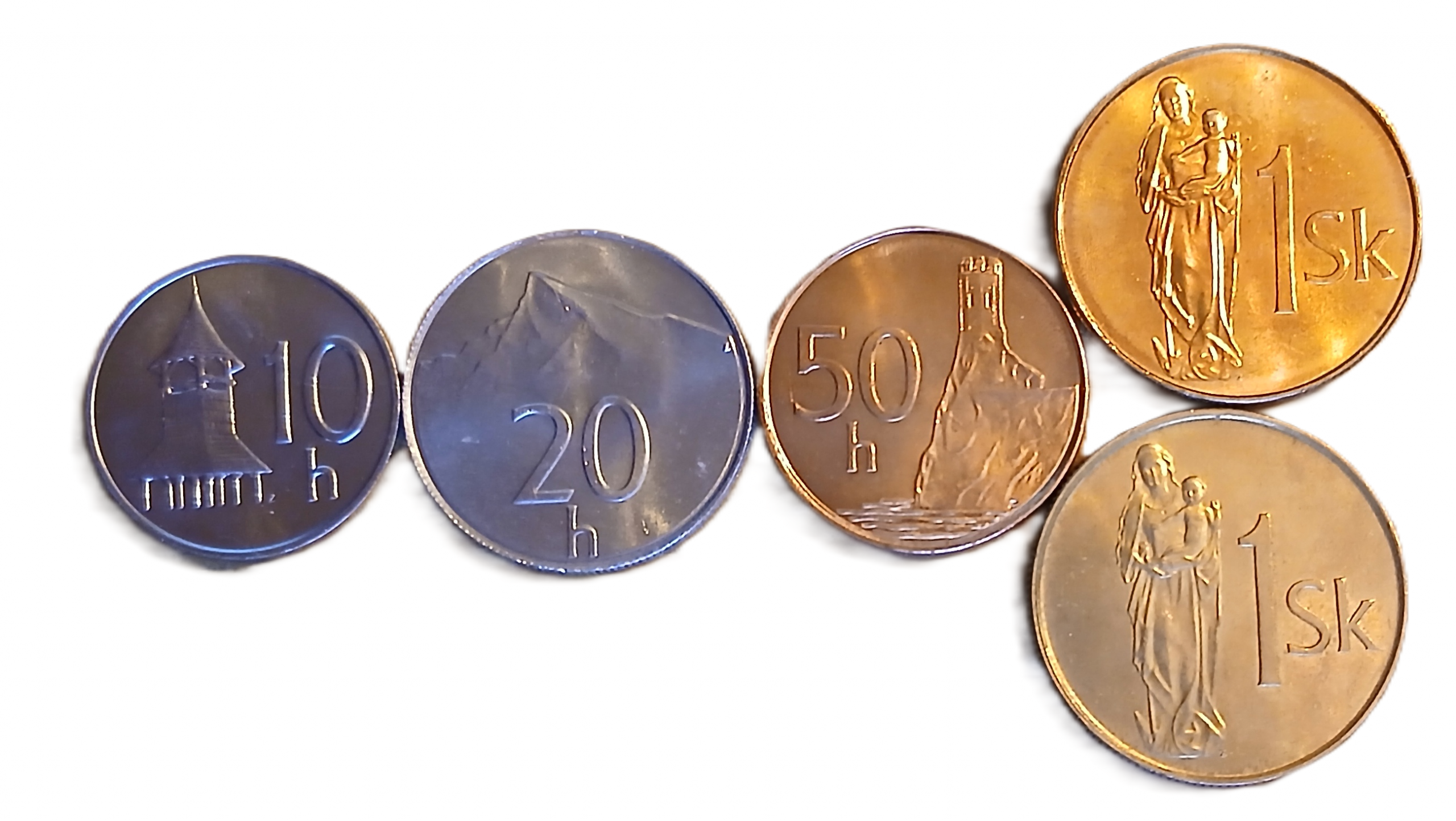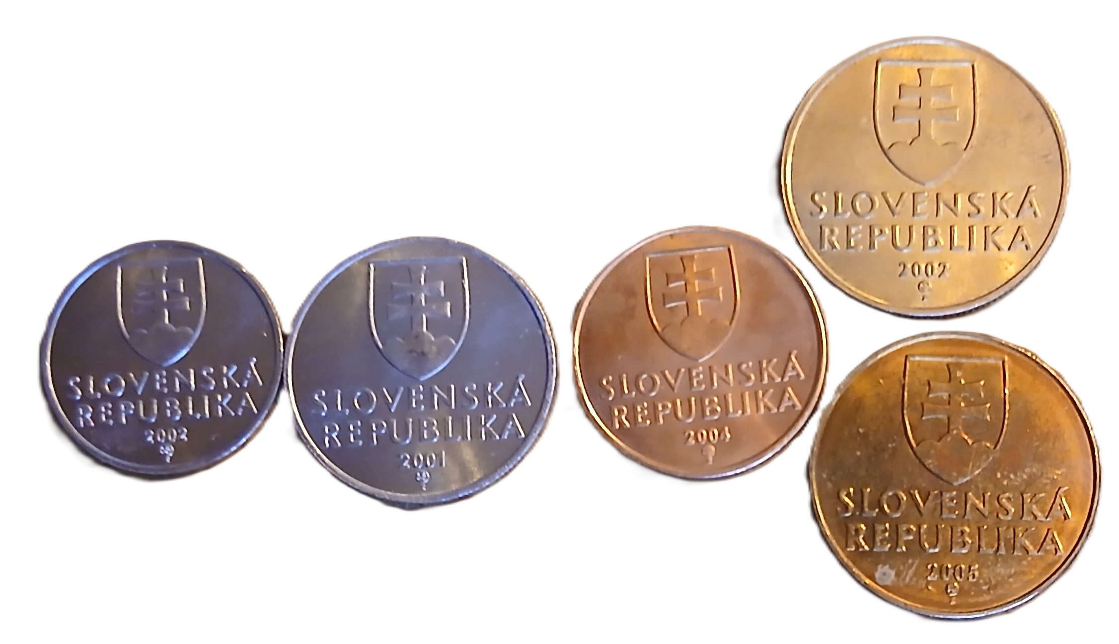 Lot de pièces de monnaie slovaque composé de : 10h 2002 FDC, 20h 2001 FDC, 50h 2004 FDC, 1C 2002, 1C 2005 FDC.