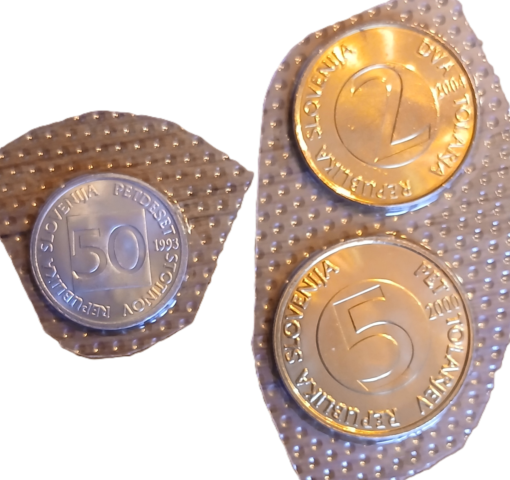 Lot de pièces de monnaie slovène composé de : 50s 1993, 2T 2004 et 5T 2000 toutes FDC.
