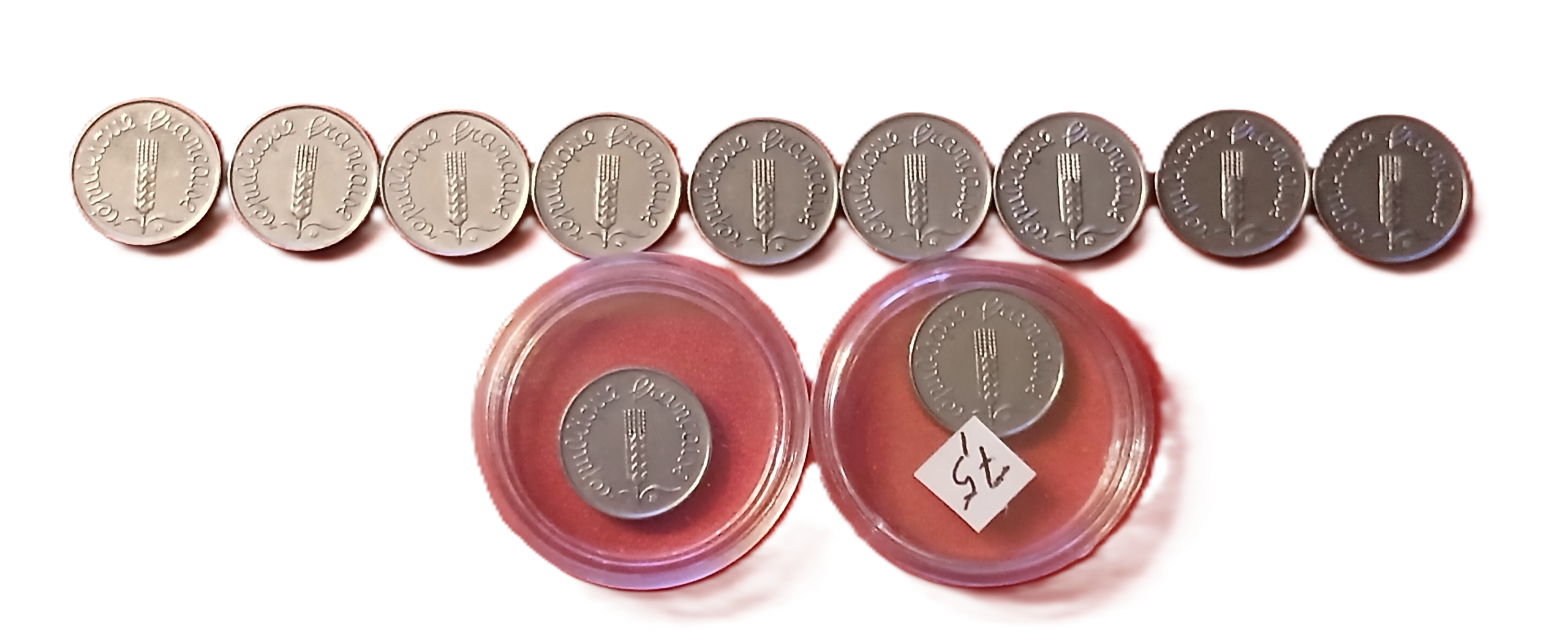 La collection 1 centime Epi courante est encore incomplète, celles de 1971, 1972, 1973, 1975, 1976, 1977 et 1978 sont indisponibles. Les années 1980 à 2001 existent mais n’ont pas circulé, elles sont extrêmement rares.