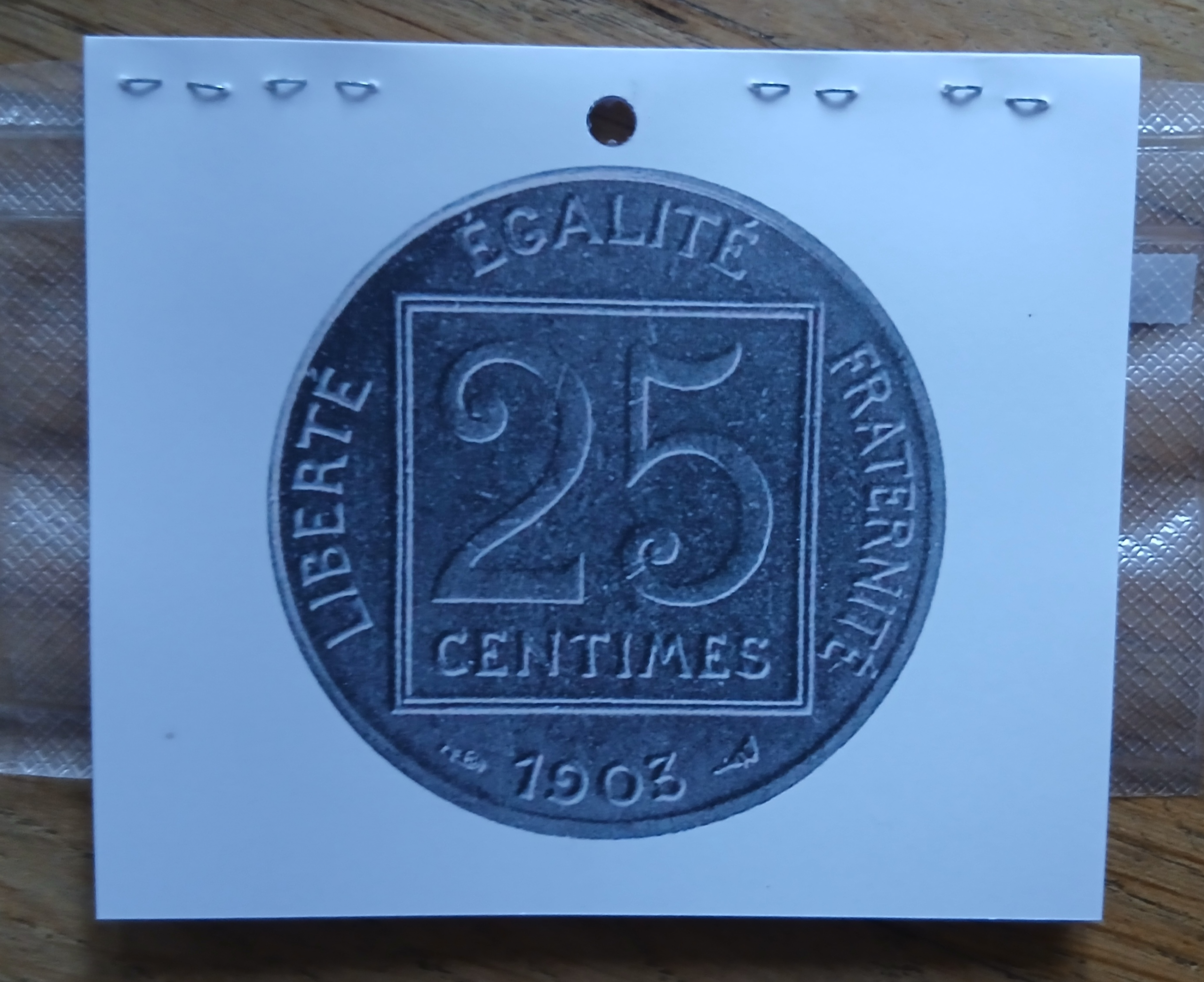 Le saviez-vous, les trous des pièces à trous permettait de la compter plus vite en les plaçant sur un bâton dressé sur un socle en bois. Empilée ainsi, arrivé au trait marqué sur le bâton vous connaissiez la somme de l’ensemble. Malin !