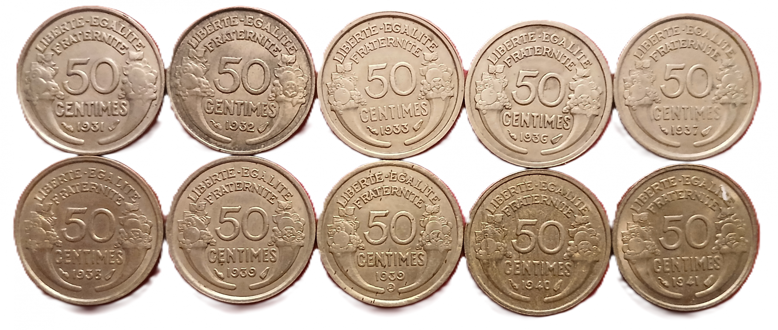 Collection des 50 centimes françaises type Morlon en cupro-nickel
