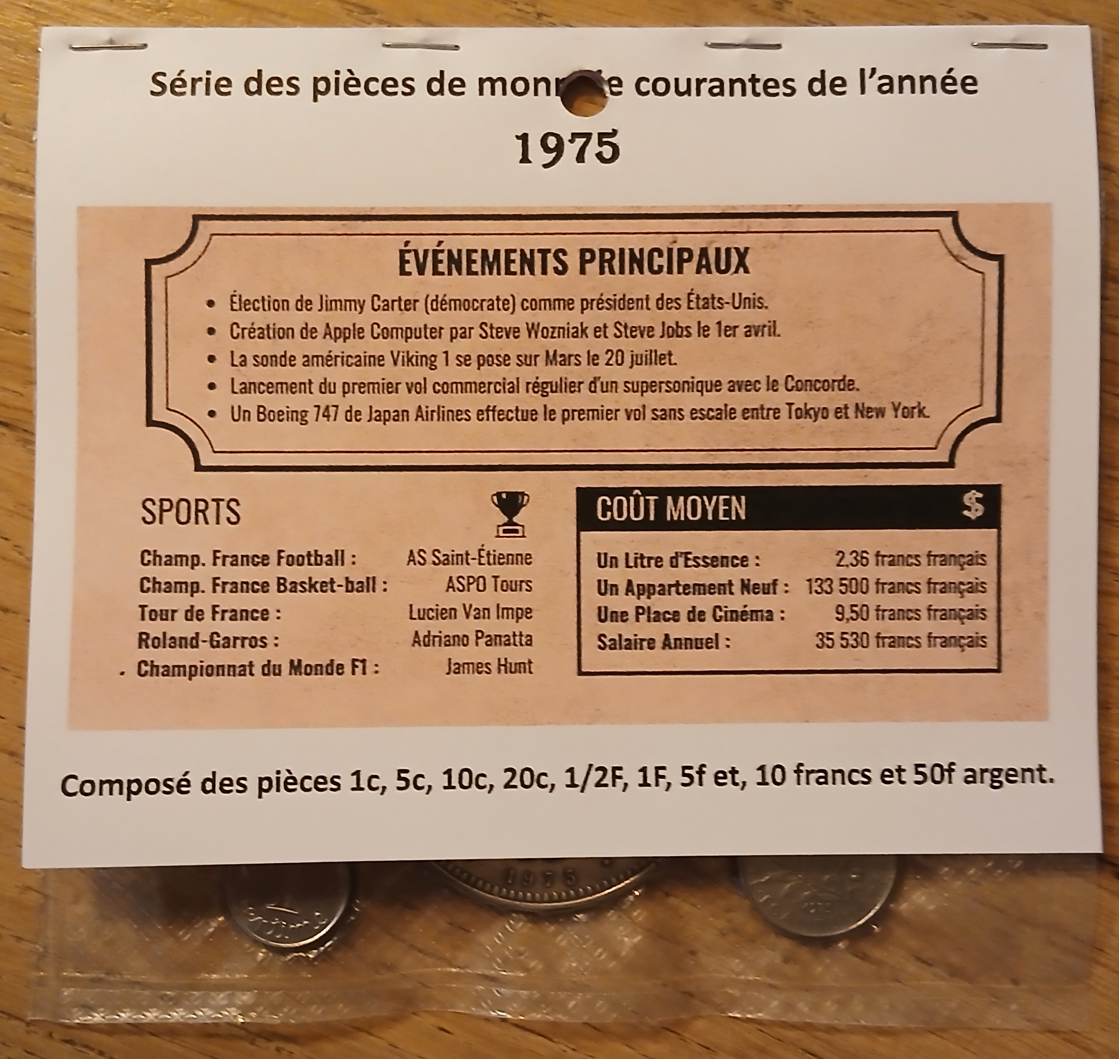 La collection étant complète elle est placée dans une pochette dédiée à l’année 1975.