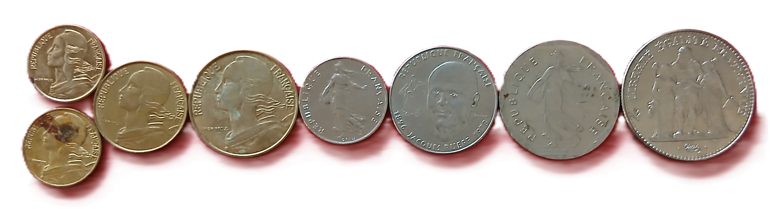 Les pièces de 1 centime, 1 franc Semeuse, 5 francs Semeuse, 10 francs Génie, 20 francs Mont Saint Michel et 100 francs Panthéon existent mais sont rarissimes.